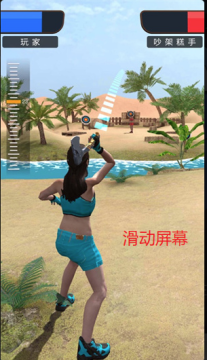 4、滑动屏幕控制射击轨迹和角度,点击按钮发射箭矢,使箭击中对手。