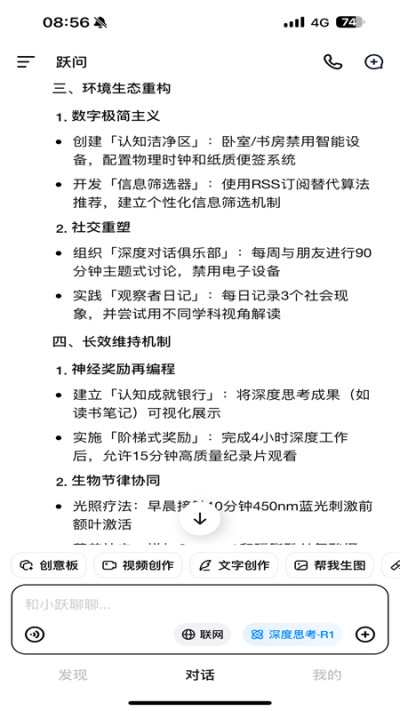 2、将搜索、问答、创作等多种功能集成于一体,一个软件满足用户多方面需求,无需在多个应用间切换。