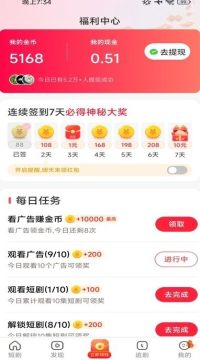 用户可通过签到、任务等方式获取更多福利,实现“边看边赚”。