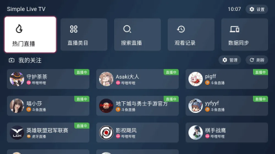 如果你是一个经常使用simpleLive手机版用户,那么可以将你的使用数据,如关注用户、观看记录等数据同步到TV端。