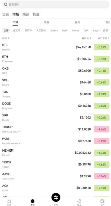实时行情看板:提供BTC、ETH等500+种数字货币的实时价格、24H涨跌幅、市值排名及成交量数据,支持自定义筛选与排序。