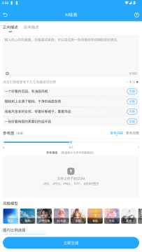 使用AI绘画功能可以自由选择绘画的风格类型通过文字描述生成你想要的绘画作品。