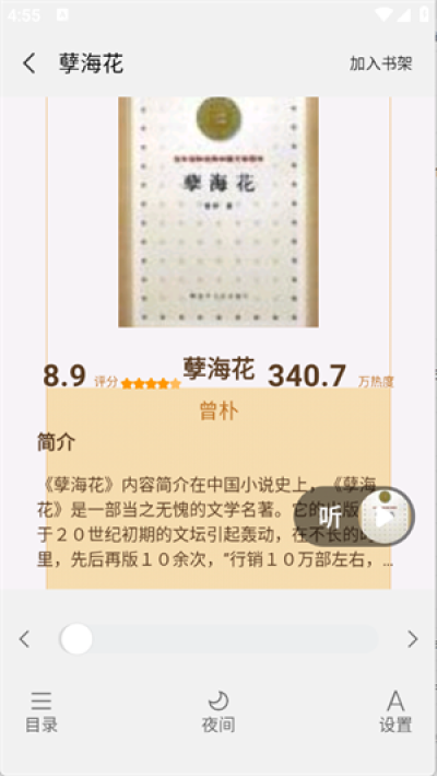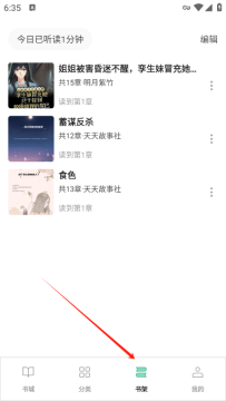 1、用户点击打开自己想看的小说作品,点击右下的听书按钮