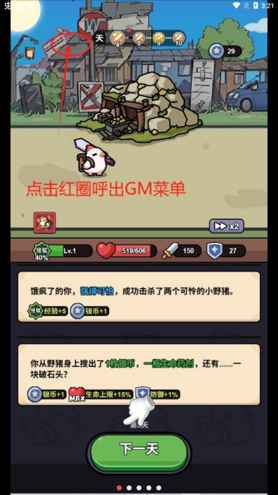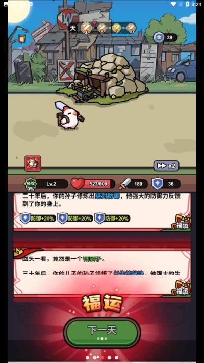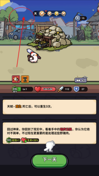 3、然后点击下一天可以推动剧情的发展,每一天都会随机触发不同的事件。
