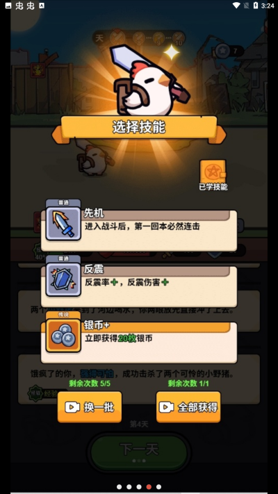 5、击败怪物后会获得经验,经验满后会提升等级,升级可以选择一个技能来强化自己。
