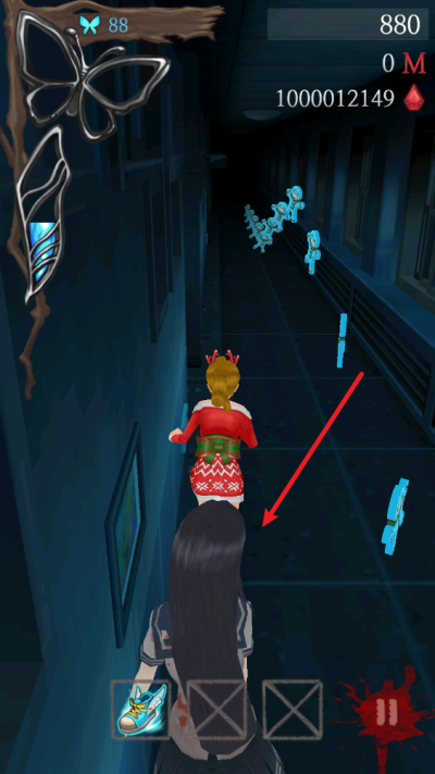 4、后方会有鬼魂不断的追你,千万不要撞到障碍物,不然就会被追上。