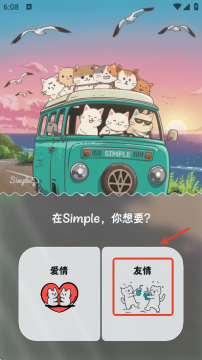 进入app,用户们直接选择自己的交友目的,点击右边的“友情”