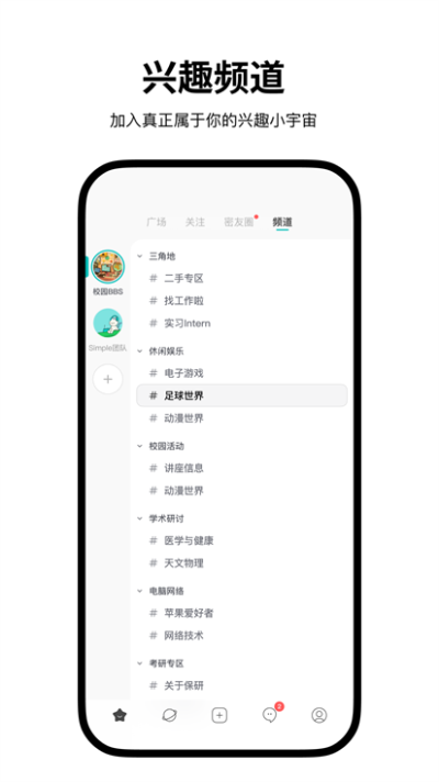 兴趣频道:汇聚各类兴趣社群,围绕共同爱好展开深度交流,拓展人脉。