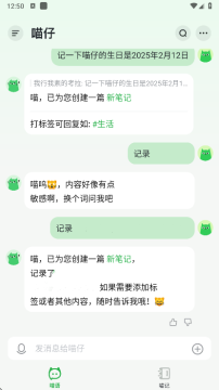 3、通过对话可以让喵仔帮你记录笔记,可以语音输入和传图片