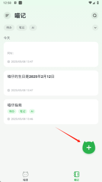 4、在喵记里可以查看到记录的笔记,也可以手动添加,如图所示