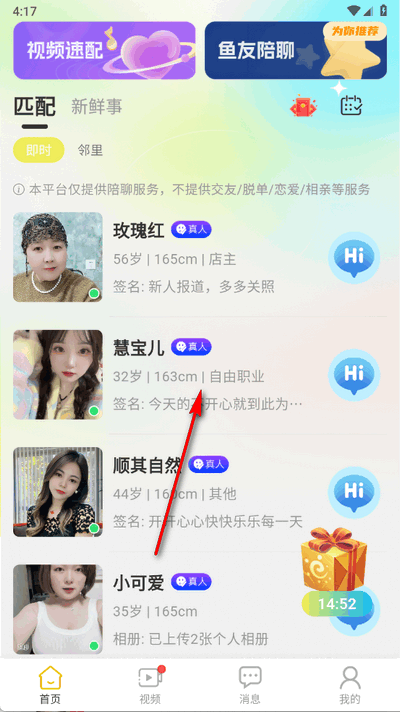 1. 浏览用户信息:在首页下滑浏览更多用户信息,找到自己喜欢的类型。