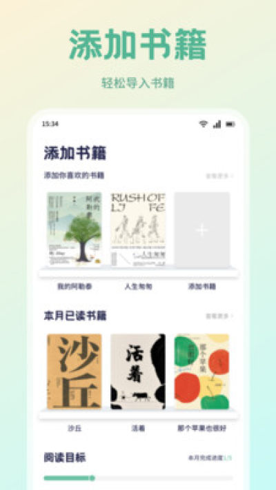 2.独立添加书籍,自定义阅读目标,打造个性化的空间,操作也是非常简单。