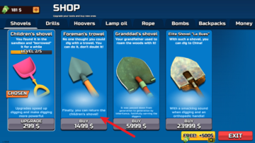 4、有了足够的资金后,我们就能够在商店中购买更好的铲子,或者是炸弹、绳索等道具。