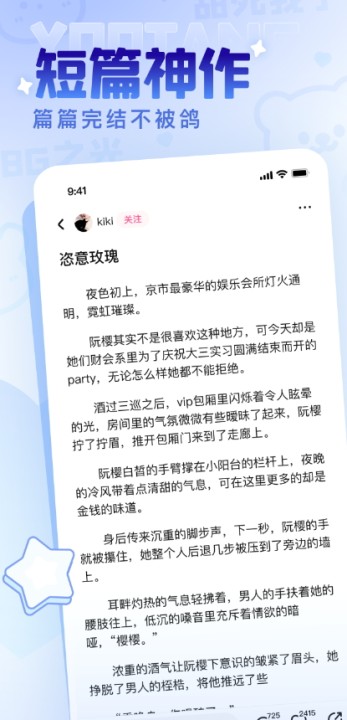 有糖,以短篇小说为主的内容社区~在这里每个人可以根据自己喜好找到伙伴,分享阅读体验。再也不用追更等完结,一口气尽享优质内容。另有官方帅糖贴心陪伴,协助写手养成。不管你是追星少女,阅读爱好者还是写手太太,我们都将竭诚为你打造优质阅读和创作环境,让内容在有糖生根发芽。