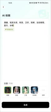 1、在主页选择AI绘画,然后选择你想要的画风主题