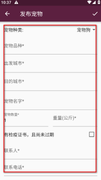 2、正确输入宠物品种、出发城市、目的地城市、宠物名字、宠物数量等重要信息。