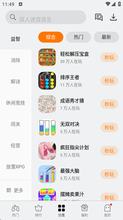不同的游戏有详细的划分,可以随时根据自己的喜好进行筛选,非常方便;