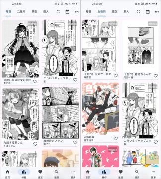 1、在“排行榜”页面中,PixEz提供了非常细致的分类,包括每日热门、女性向作品、原创作品、新人佳作、每周精选、每月精选以及AI绘画等多个类别,可以帮助我们快速找到自己感兴趣或需要的插画作品。