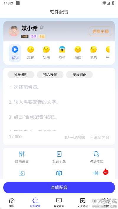 专业的AI配音工具,文字3秒变声音,提供百种仿生拟人AI主播供用户随点随试听,支持20种不同情绪的发音,表现出丰富的情感。