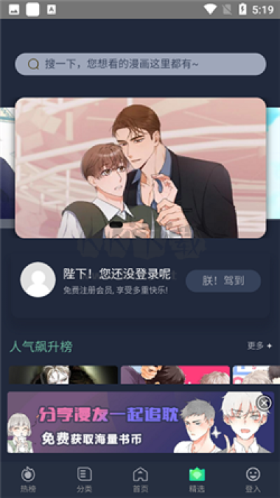 分享功能:用户可将漫画分享给朋友,共同享受阅读乐趣。