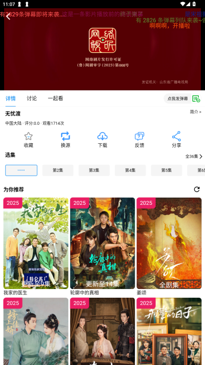 4、直接点开喜欢的影视就可以播放了,如果播放失败,可以切换播放源。