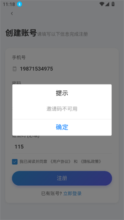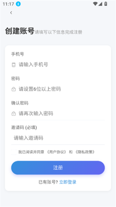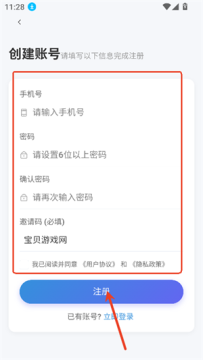 3、如果没有账号的话点击下方的立即注册,然后输入基本信息,邀请码可以任意填写,最后点击注册就行了