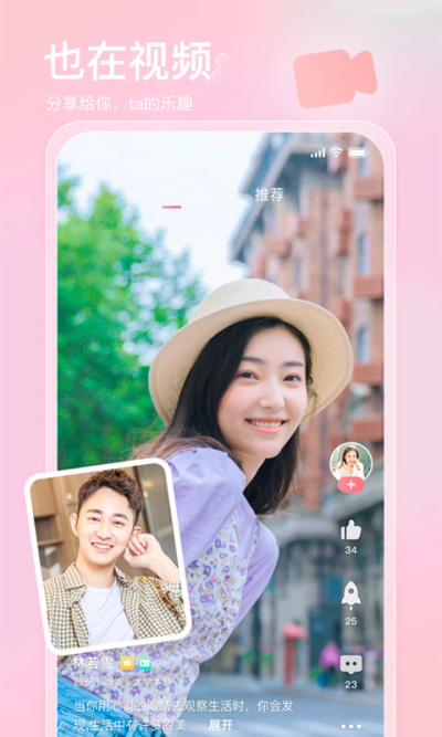 也在app是一款安卓手机免费交友平台,智能大数据平台为你精准推荐附近用户,无限右滑遇见喜欢的那个TA,支持视频语音等多种形式进行聊天互动,随时随地轻松互动,在这里发现更多交友玩法吧!对软件感兴趣的话不妨点击下载试试!
