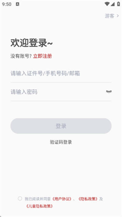 2、打开进入软件,新用户先使用手机号登录注册账号