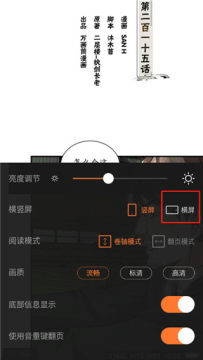 4、点击方框内横屏即可取消竖屏模式,不取消的话就是竖屏阅读。