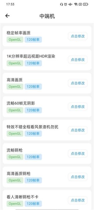 3、在第2个功能板块中,拥有着8个功能,其中就有专属修改、高优化修改、低端机、中端机、高端机等选项