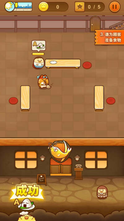 3、精美的卡通画风和轻松愉快的背景音乐,让玩家在紧张的烹饪节奏中享受游戏乐趣;