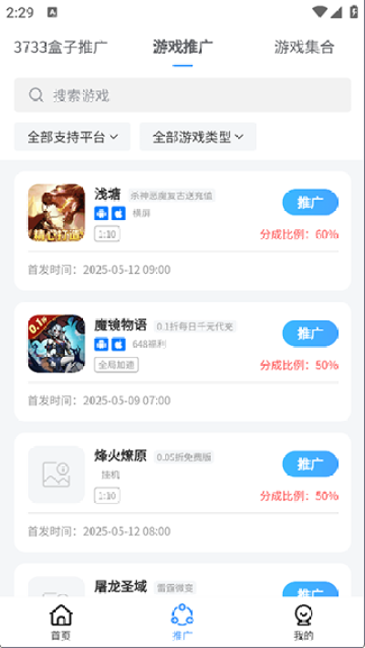 3733游戏推app是一款安卓手机免费游戏盒子应用,平台中汇聚海量的优质游戏资源,不同类型的游戏满足你的游玩需求,还可以搜索关键词进行快捷查询,还可以推广热门游戏资源到其他平台中,对软件感兴趣的话不妨点击下载试试!