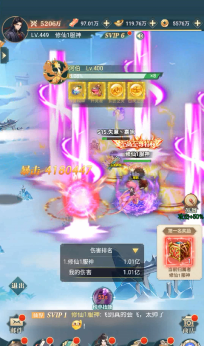 【开局福利】50万真气、金币*100万、元宝*2万、强化石*300、注灵石*30;