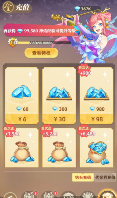充值比例1元:10钻石