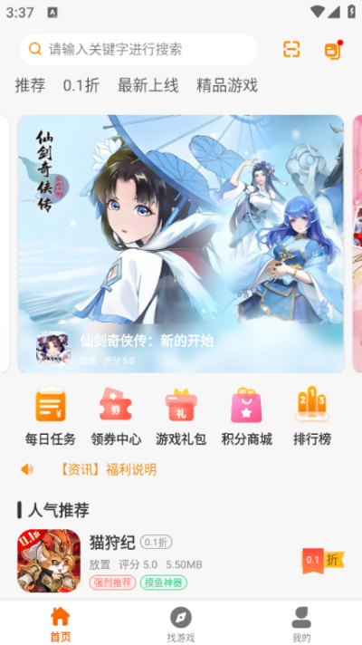趣次元app是一款安卓手机游戏盒子应用,汇聚全网热门软件资源内容,不同的软件类型满足你的使用需求,新人登陆即可领取超值礼包券,免费畅玩0.1折游戏专区,对软件感兴趣的话不妨点击下载试试!