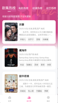 3、排行榜页面根据当前热度提供了剧集热榜、电影热榜以及动漫热榜等。