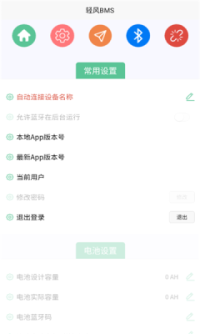启动应用并开启蓝牙:打开轻风BMS应用,并确保手机或平板设备的蓝牙功能已开启。