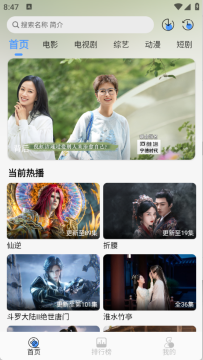 1、首先进入app首页,就可以看到顶部栏中有很多的影视剧集,包含了电视剧、电影以及综艺等。