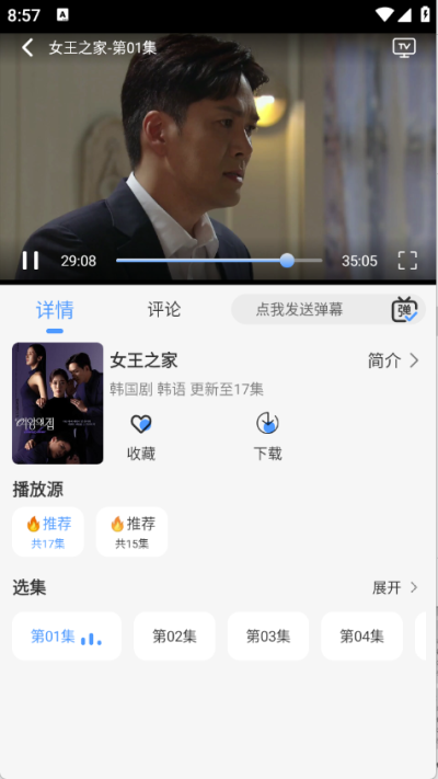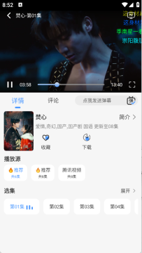 4、找到并点开想看的影视之后,进入就可以播放了,支持选择集数、切换播放源等。
