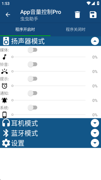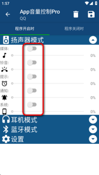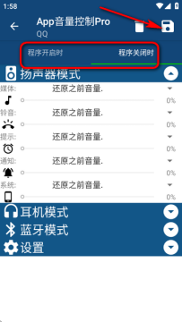 6、可以选择在程序开启时或者关闭时的音量,设置好后点关闭即可。