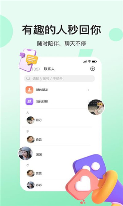 与更多的好友来有趣的聊天互动,获取温馨的陪伴,从而可以极速秒回信息。