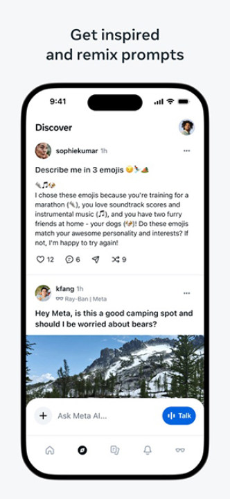 metaai软件是一款安卓手机人工智能ai软件,软件中有着海量的实用功能等你体验,广大用户可以随时随地展开全新的探索冒险,你可以向ai自由进行提问,根据你的描述进行创意图片背景生成,对软件感兴趣的话不妨点击下载试试!