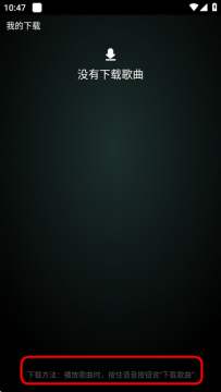 3、打开我的下载按钮,可以看到是播放歌曲时按住语音按钮,说下载歌曲才可以下载。