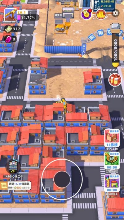 1、简单操作:拖动摇杆移动挖掘机,靠近违建即可开始拆楼!