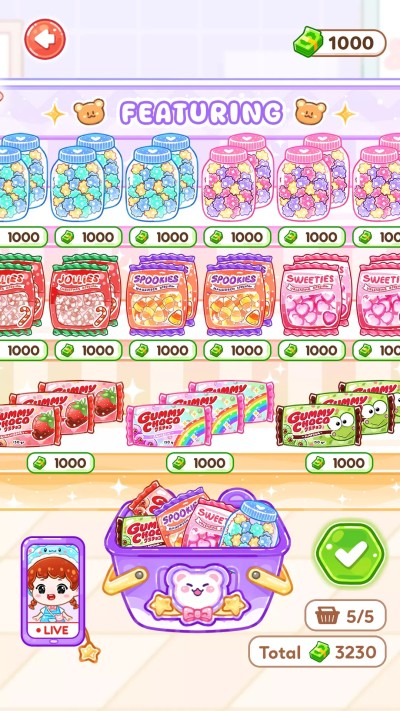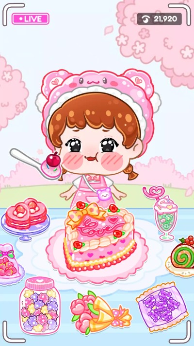 您的直播越成功,您赚的钱就越多。用你的收入升级你的女孩的服装,给她一个时尚和新潮的外观。您还可以购买更多美味的食物,以满足不断增长的观众并让吃播继续下去!