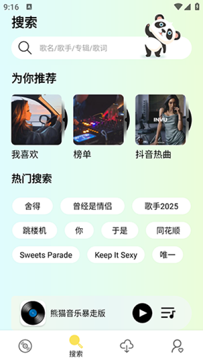 熊猫音乐暴走版最新版本是一款专业的高品质音乐软件,软件提供了海量的音乐资源涵盖多种不同的类型,内置多个资源接口,用户可以一键搜索收听下载音乐,支持导入其他音乐平台的歌单,方便用户迁移和管理自己的音乐库,提供多种主题和背景供用户选择,个性化定制自己的音乐体验!