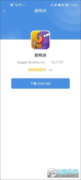 3、小编以最近大热的鹅鸭杀游戏为例,在上方搜索栏输入“鹅鸭杀”即可在下方查看该游戏的评分以及厂商信息,点击一键下载即可。