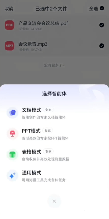 1、文档智能体:可一键生成行业研究、学术论文、商业计划等专业报告,自动嵌入条形图、雷达图等数据可视化图表,并支持导出为Word/PDF格式。