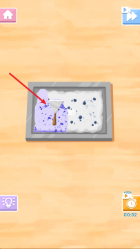 5、待食物完全的变色之后,我们就可以利用铲子将其铲开了。