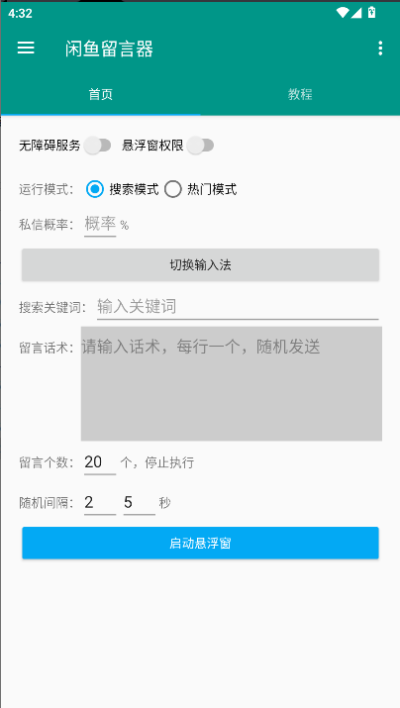 留言内容输入回车键也就是换行为一个内容,没有输入回车键和换行,都为一个内容,随机发送,点击切换输入法,使用脚本输入法即可。